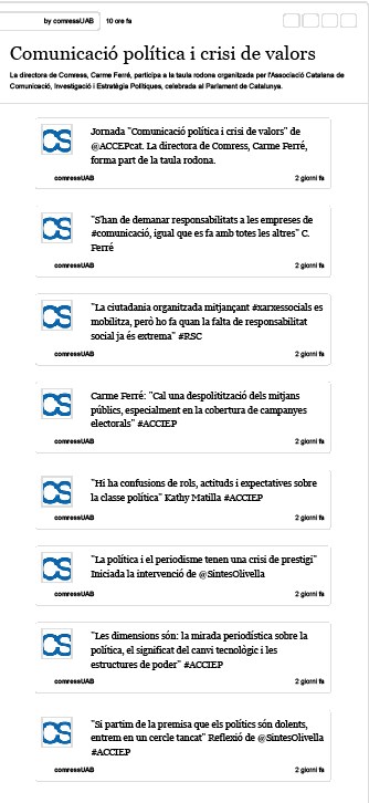 L’Associació Catalana de Comunicació, Investigació i Estratègia Polítiques es va posar de llarg al Parlament per debatre la intersecció entre la comunicació política i la crisi de valors. Entre altres ponents hi va participar Carme Ferré, com a professora de la UAB i directora de Comress-Incom UAB.